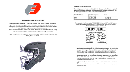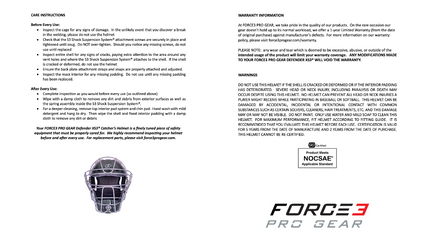 The FORCE3 PRO GEAR XS3™ PRO Catcher’s Helmet is a highly engineered mechanical device. Please ensure you always adhere to the following instructions: